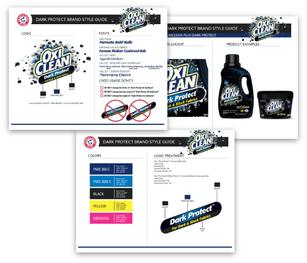 When Oxiclean came to us, they were only playing in the stain fighting space. They wanted a new product that not only offered stain fighting, but a color-safe bleach alternative to also whiten and brighten. We work closely with the innovation team to develop Oxiclean’s first White Revive product that has been a success since it’s launch. As a follow-up to that success, Oxiclean again called on Mota9 to create a line extension that darkens and preserves fabrics. Mota9 got to work, exploring names, claims, designs and illustrations. After winning in concept testing, the final product was produced and launched to shelf. The final product pops on shelf and online, and is branded strongly for the consistency of the Oxiclean line while bringing a more modern, sleek look to the forefront.