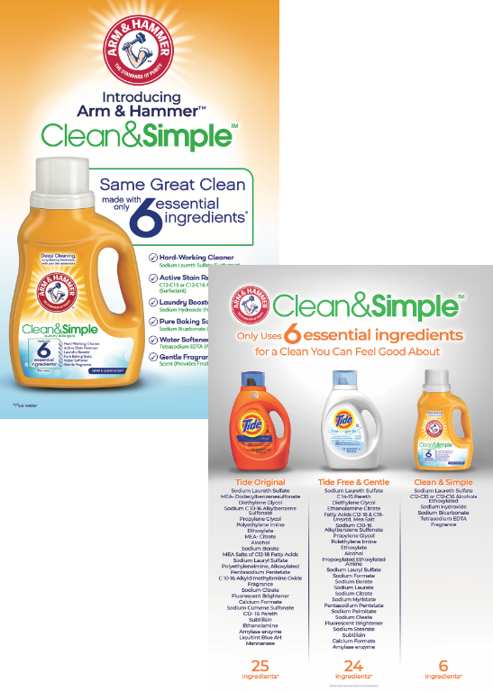 From ideation to graphic execution, Mota9 played a key part in bringing to life a “clean & simple” laundry detergent, made with only 6 essential ingredients, that doesn’t compromise on the expected efficacy of a hard-working Arm & Hammer detergent. Clean & Simple is the brand’s biggest launch to date.